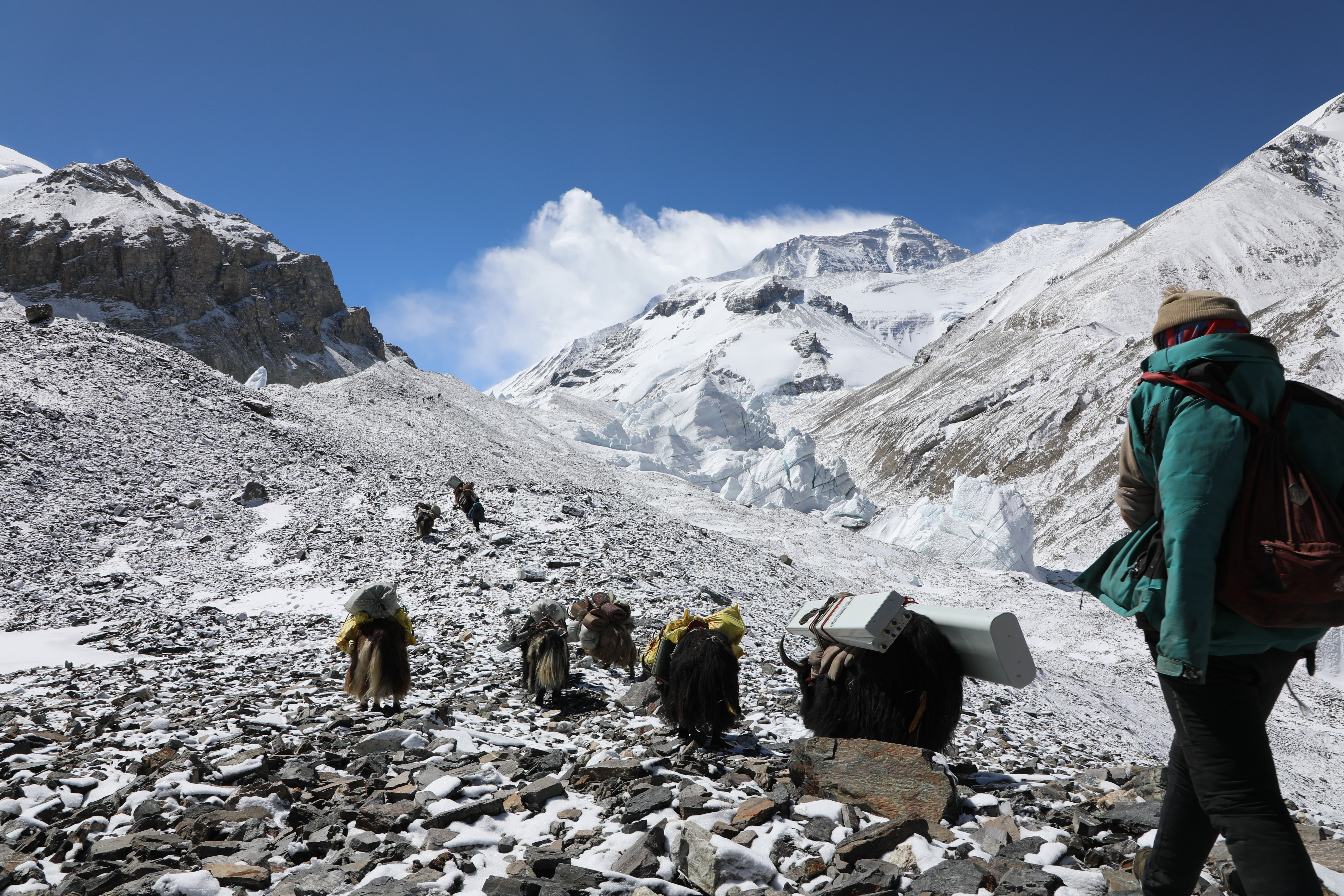 2020年4月,中國(guó)移動(dòng)在珠峰海拔6500米前進(jìn)營(yíng)地開通了全球海拔最高的5G基站,40名鋪設(shè)隊(duì)員在冰川雪路上完成了5.8噸重的光纜鋪設(shè)。
