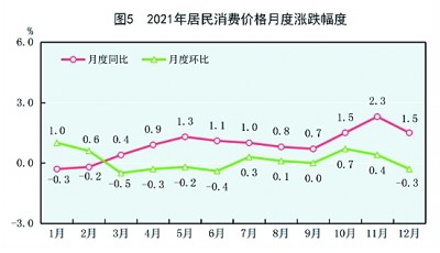 全年居民消費(fèi)價(jià)格比上年上漲0.9%。工業(yè)生產(chǎn)者出廠(chǎng)價(jià)格上漲8.1%。工業(yè)生產(chǎn)者購(gòu)進(jìn)價(jià)格上漲11.0%。農(nóng)產(chǎn)品生產(chǎn)者價(jià)格[12]下降2.2%。12月份,70個(gè)大中城市中,新建商品住宅銷(xiāo)售價(jià)格同比上漲的城市個(gè)數(shù)為53個(gè),下降的為17個(gè);二手住宅銷(xiāo)售價(jià)格同比上漲的城市個(gè)數(shù)為43個(gè),持平的為1個(gè),下降的為26個(gè)。(見(jiàn)圖5)(見(jiàn)表2)