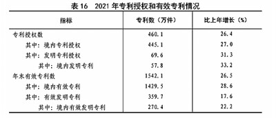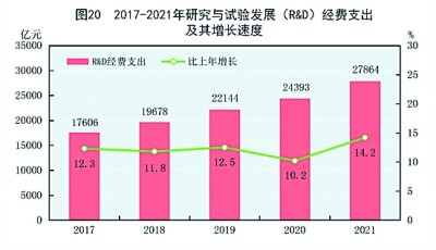 全年研究與試驗(yàn)發(fā)展(R&D)經(jīng)費(fèi)支出27864億元,比上年增長(zhǎng)14.2%,與國(guó)內(nèi)生產(chǎn)總值之比為2.44%,其中基礎(chǔ)研究經(jīng)費(fèi)1696億元。國(guó)家自然科學(xué)基金共資助4.87萬(wàn)個(gè)項(xiàng)目。截至年末,正在運(yùn)行的國(guó)家重點(diǎn)實(shí)驗(yàn)室533個(gè),納入新序列管理的國(guó)家工程研究中心191個(gè),國(guó)家企業(yè)技術(shù)中心1636家,大眾創(chuàng)業(yè)萬(wàn)眾創(chuàng)新示范基地212家。國(guó)家科技成果轉(zhuǎn)化引導(dǎo)基金累計(jì)設(shè)立36支子基金,資金總規(guī)模624億元。國(guó)家級(jí)科技企業(yè)孵化器[60]1287家,國(guó)家備案眾創(chuàng)空間[61]2551家。全年授予專(zhuān)利權(quán)460.1萬(wàn)件,比上年增長(zhǎng)26.4%;PCT專(zhuān)利申請(qǐng)受理量[62]7.3萬(wàn)件。截至年末,有效專(zhuān)利1542.1萬(wàn)件,其中境內(nèi)有效發(fā)明專(zhuān)利270.4萬(wàn)件。每萬(wàn)人口高價(jià)值發(fā)明專(zhuān)利擁有量[63]7.5件。全年商標(biāo)注冊(cè)773.9萬(wàn)件,比上年增長(zhǎng)34.3%。全年共簽訂技術(shù)合同67萬(wàn)項(xiàng),技術(shù)合同成交金額37294億元,比上年增長(zhǎng)32.0%。(見(jiàn)圖20)(見(jiàn)表16)
