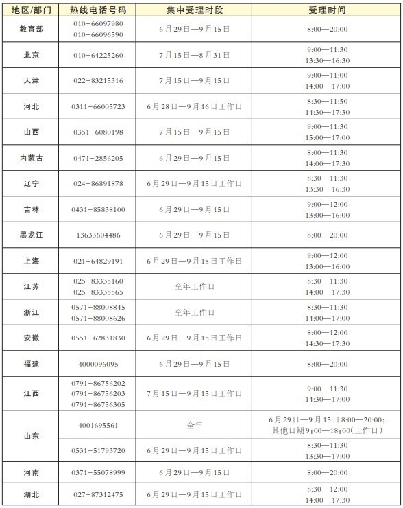 教育部要求各省區(qū)市及所屬高校、中央高校學(xué)生資助管理部門均開通熱線電話,并結(jié)合實際情況自行確定集中受理時段和具體受理時間。