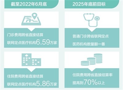 《通知》明確提出,2025年底前,住院費用跨省直接結(jié)算率提高到70%以上,普通門診跨省聯(lián)網(wǎng)定點醫(yī)藥機(jī)構(gòu)數(shù)量實現(xiàn)翻一番,群眾需求大、各地普遍開展的門診慢特病相關(guān)治療費用逐步納入跨省直接結(jié)算范圍,異地就醫(yī)備案規(guī)范便捷,基本實現(xiàn)醫(yī)保報銷線上線下都能跨省通辦。