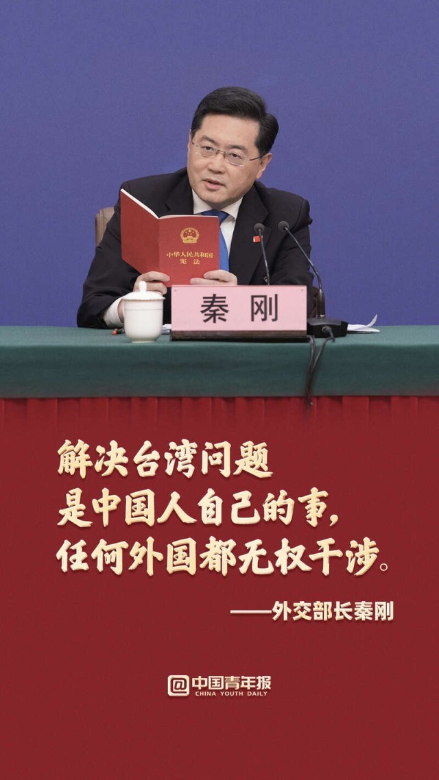 圖知道|秦剛手持憲法講臺(tái)灣問題