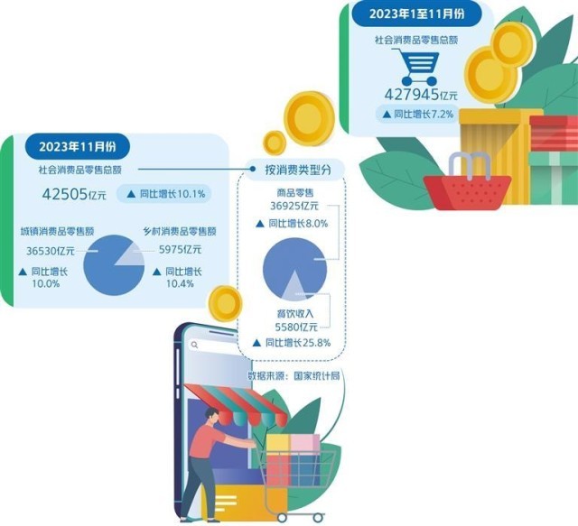 2023年以來(lái),黨中央從戰(zhàn)略全局出發(fā),高度重視在穩(wěn)增長(zhǎng)中擴(kuò)大國(guó)內(nèi)需求,把恢復(fù)和擴(kuò)大消費(fèi)擺在優(yōu)先位置,推出一系列促消費(fèi)的相關(guān)政策,通過(guò)多渠道增加居民收入、改善消費(fèi)環(huán)境、提振消費(fèi)信心,有力促進(jìn)消費(fèi)持續(xù)恢復(fù)向好。