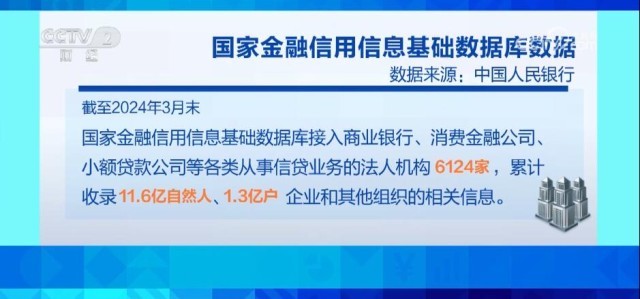 截至2024年3月末,國(guó)家金融信用信息基礎(chǔ)數(shù)據(jù)庫(kù)接入商業(yè)銀行、消費(fèi)金融公司、小額貸款公司等各類(lèi)從事信貸業(yè)務(wù)的法人機(jī)構(gòu)6124家,累計(jì)收錄11.6億自然人、1.3億戶企業(yè)和其他組織的相關(guān)信息。