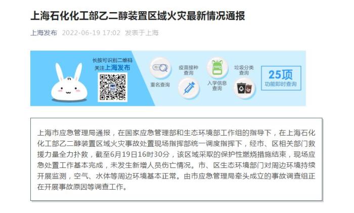 上海石化保護(hù)性燃燒措施結(jié)束 未發(fā)生新增人員傷亡情況