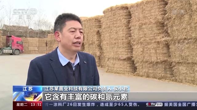 江蘇某菌業(yè)科技有限公司負(fù)責(zé)人 侯小君:麥秸稈是我們種植雙孢菇的基本原料,它含有豐富的碳和氮元素,我們把它和雞糞混合攪拌之后,培養(yǎng)出我們種植雙孢菇的基料。我們現(xiàn)在年產(chǎn)雙孢菇大概4萬(wàn)噸,一年消耗秸稈用料5.7萬(wàn)噸左右。