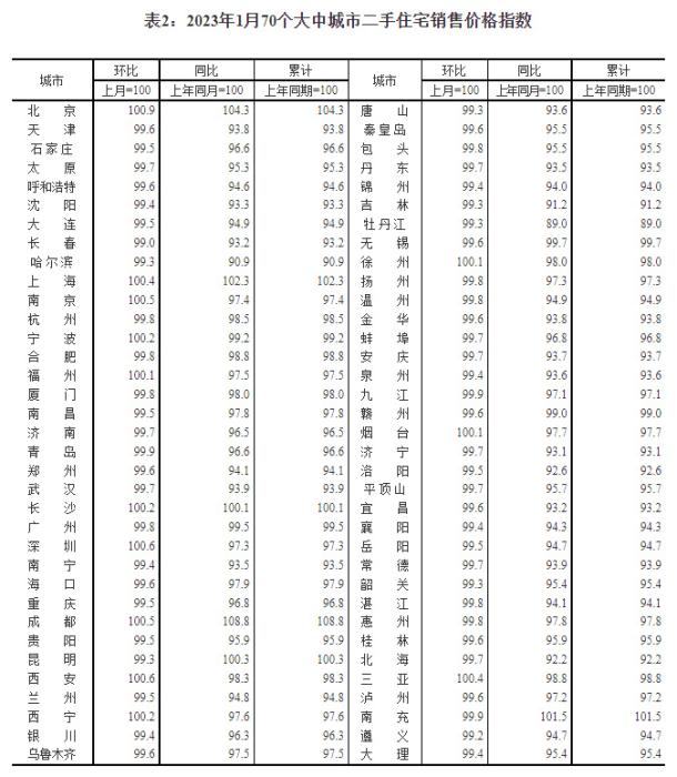 2023年1月份,70個大中城市中商品住宅銷售價格環(huán)比上漲城市個數(shù)增加;一線城市商品住宅銷售價格環(huán)比轉漲、二三線城市環(huán)比降勢趨緩,一線城市商品住宅銷售價格同比上漲、二三線城市同比下降。