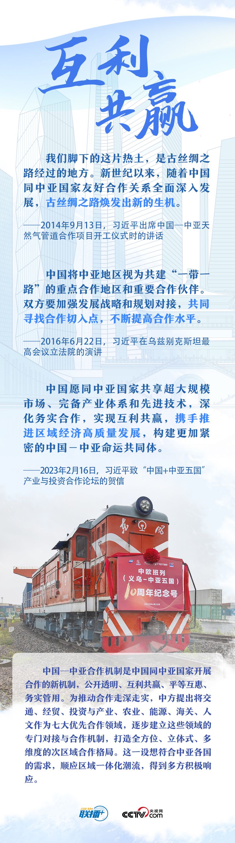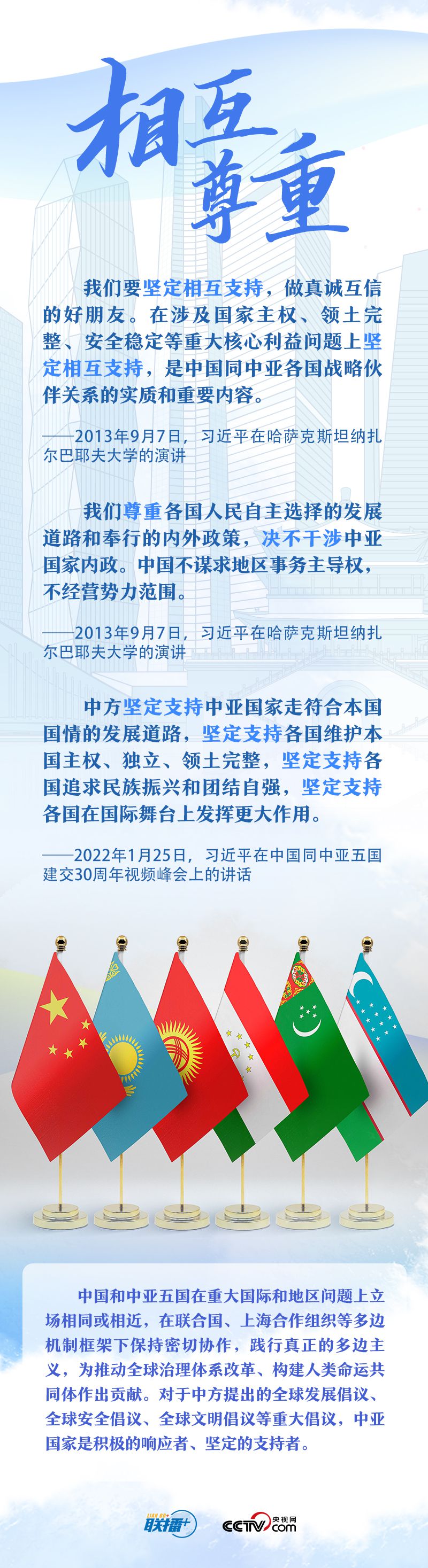 習(xí)主席把中國同中亞五國合作的成功密碼總結(jié)為“相互尊重、睦鄰友好、同舟共濟(jì)、互利共贏”。他強(qiáng)調(diào),這四項原則是在合作中積累的寶貴經(jīng)驗和共同財富,是中國同中亞國家關(guān)系行穩(wěn)致遠(yuǎn)的政治保障,也是中國同中亞國家友好交往繼往開來的力量源泉。央視網(wǎng)《聯(lián)播+》與您一起學(xué)習(xí)。