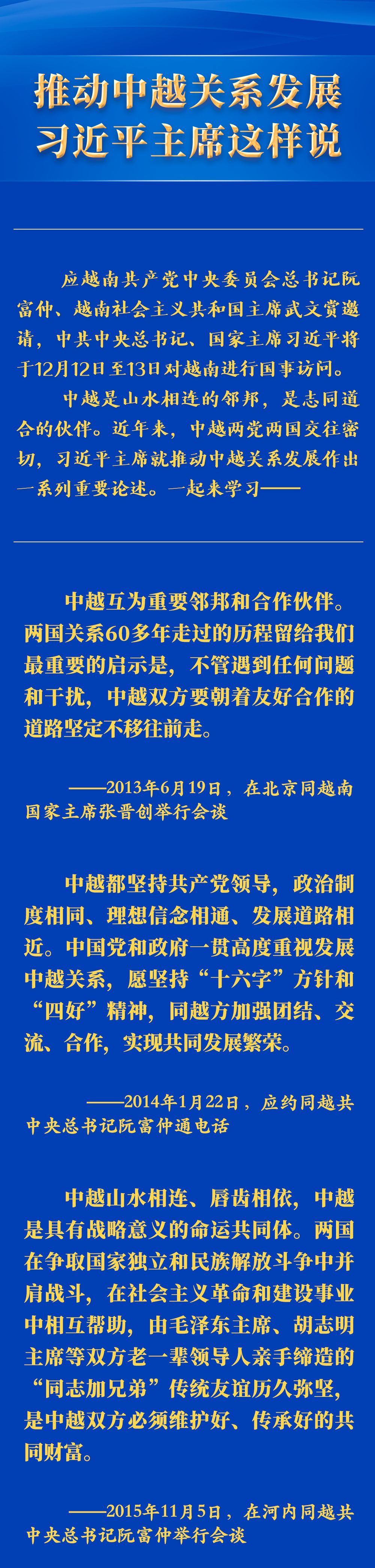 推動中越關(guān)系發(fā)展,習(xí)近平主席這樣說