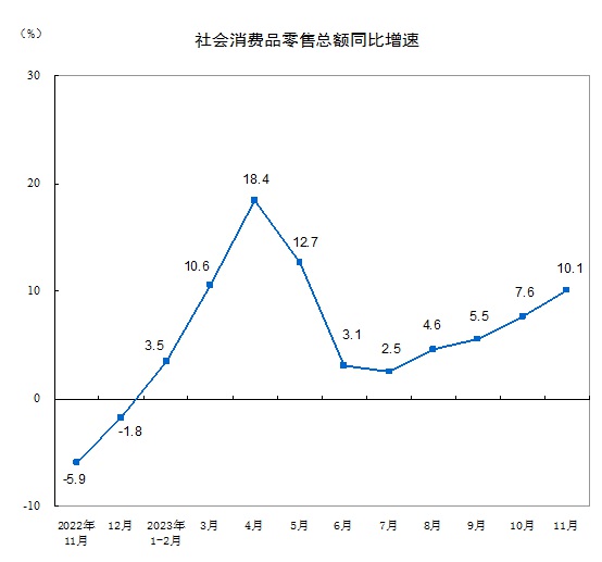 國(guó)家統(tǒng)計(jì)局:11月份社會(huì)消費(fèi)品零售總額增長(zhǎng)10.1%