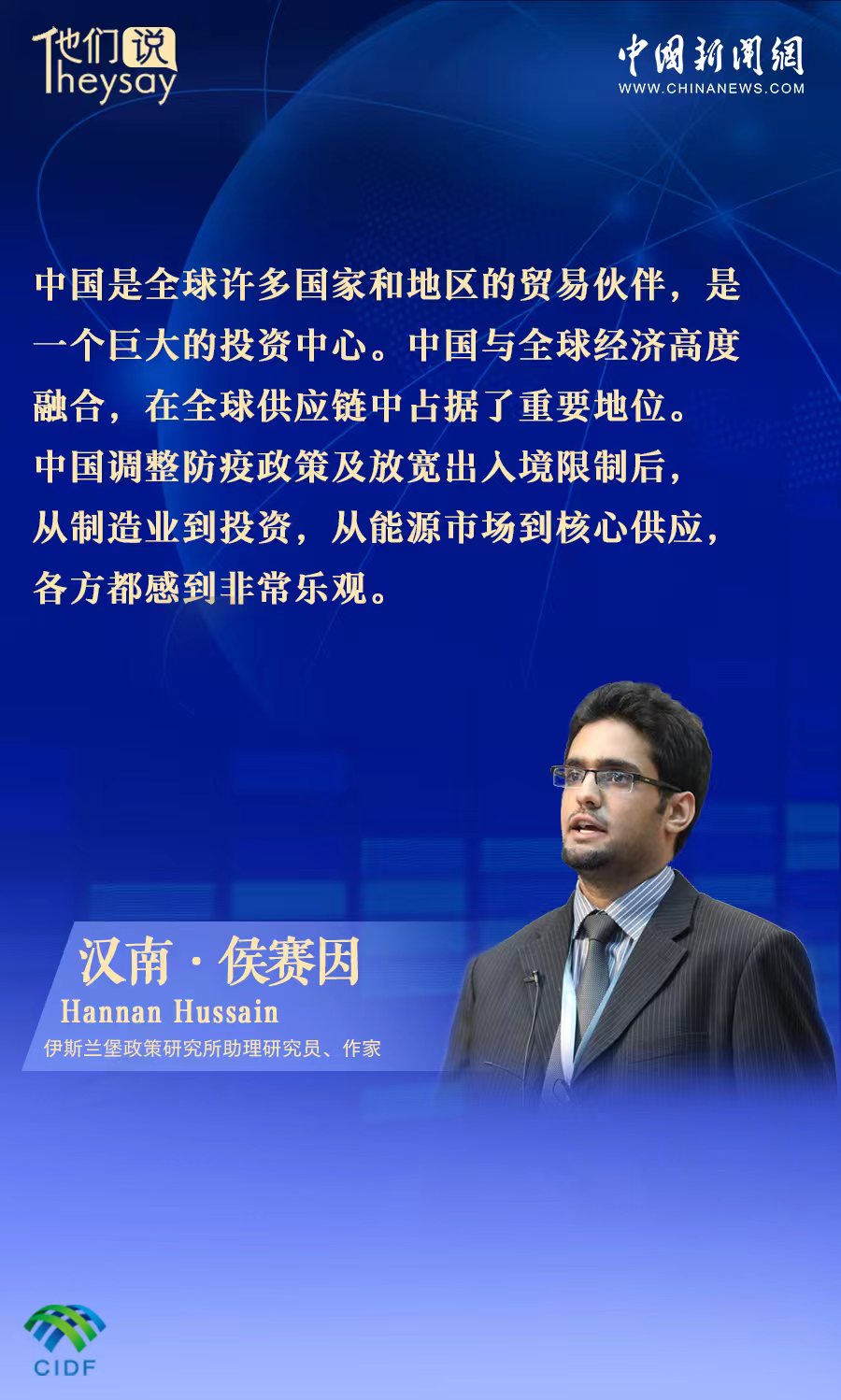 中新網(wǎng)北京3月27日電 (張乃月)“中國(guó)將政府和公眾之間的溝通視為一大要素。這使得中國(guó)取得了其他國(guó)家期望但難以實(shí)現(xiàn)的成功——民眾與政府之間的高度信任?!卑突固挂了固m堡政策研究所(IPRI)助理研究員漢南·侯賽因近日在接受中新網(wǎng)采訪時(shí)指出,中國(guó)優(yōu)化防疫政策,給全球市場(chǎng)帶來(lái)了樂(lè)觀情緒。