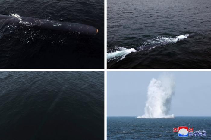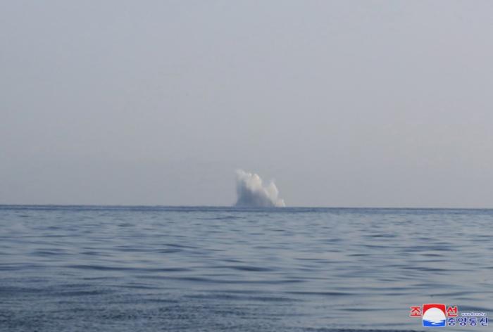 3月25日至27日,朝鮮進(jìn)行潛水式戰(zhàn)略武器系統(tǒng)試驗。圖片來源:朝中社