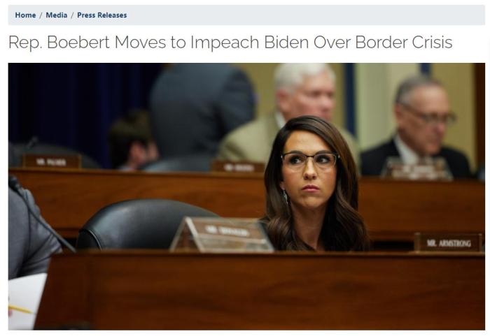 對于奧格爾斯的彈劾條款,勞倫·博伯特6月13日表示,“根據(jù)我們的憲法,我支持任何提出的彈劾條款,對拜登進行彈劾。” 博伯特還敦促共和黨人利用眾院多數(shù)席位的優(yōu)勢,立即對拜登政府采取行動。