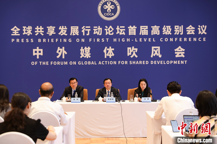 7月4日,全球共享發(fā)展行動論壇首屆高級別會議中外媒體吹風(fēng)會在北京舉行。針對有觀點(diǎn)認(rèn)為西方國家與發(fā)展中國家看待全球發(fā)展倡議的視角不同,對全球發(fā)展倡議的評價(jià)也不同,中國國家國際發(fā)展合作署副署長趙峰濤(中)在北京回應(yīng)指出,全球發(fā)展倡議面向全球,無分南北。倡議是開放、包容的,不能用狹隘的地緣政治、冷戰(zhàn)思維、陣營對抗理念來解讀。 中新社記者 趙雋 攝