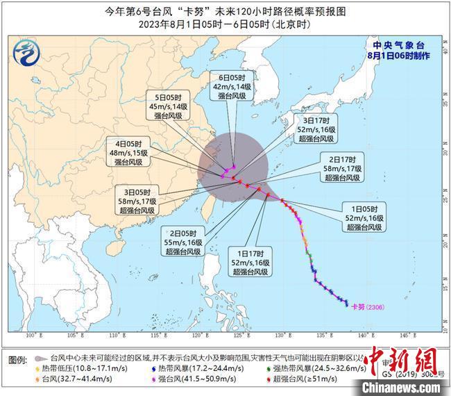 8月1日,臺(tái)風(fēng)“卡努”在一天之內(nèi)連跳兩級(jí),加強(qiáng)為超強(qiáng)臺(tái)風(fēng)。8月2日上午移入東海,后逐漸向浙江中部至福建北部一帶沿海靠近。
