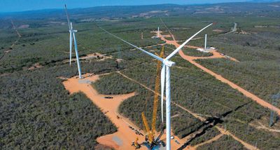 位于巴西巴伊亞州的風(fēng)電項目正在進行機器吊裝。