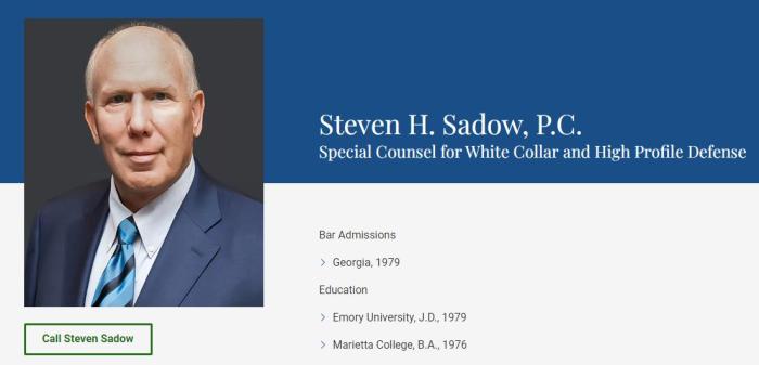 據(jù)報道,曾在佐治亞州為特朗普辯護的芬德林,將被一名來自亞特蘭大的律師薩多取代,他的網(wǎng)站簡介稱他是“為白領和知名人士辯護的特別律師”。