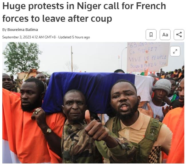 近來,尼日爾國(guó)內(nèi)的反法情緒日漸高漲。尼日爾軍政府8月31日宣布,暫停各國(guó)非政府組織、國(guó)際組織和聯(lián)合國(guó)機(jī)構(gòu)在“軍事行動(dòng)區(qū)”內(nèi)活動(dòng),并下令警察驅(qū)逐法國(guó)駐尼大使。