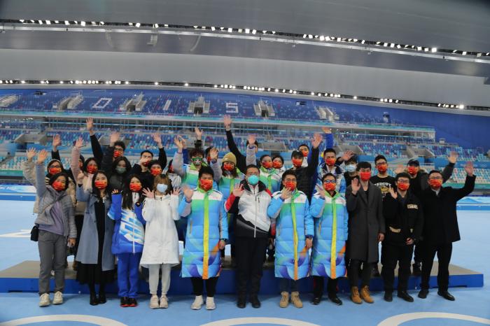 北京大學體育教研部臺籍教師陳文成組建的臺胞志愿者服務隊在北京冬奧會上合影。 本人供圖