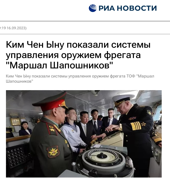 中新網(wǎng)9月16日電 綜合俄媒報(bào)道,當(dāng)?shù)貢r(shí)間16日,朝鮮最高領(lǐng)導(dǎo)人金正恩抵達(dá)符拉迪沃斯托克市克涅維奇機(jī)場,俄國防部長紹伊古在機(jī)場向金正恩展示了圖-160戰(zhàn)略轟炸機(jī)等戰(zhàn)機(jī)。隨后,一行人登上俄太平洋艦隊(duì)“沙波什尼科夫元帥”號(hào)護(hù)衛(wèi)艦。