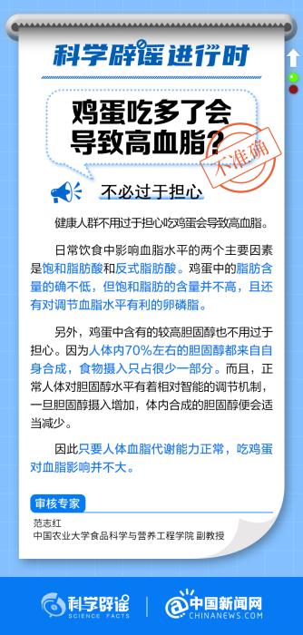 中新網(wǎng)11月27日電 只要人體血脂代謝能力正常,吃雞蛋對血脂影響并不大。日常飲食中影響血脂水平的兩個主要因素是飽和脂肪酸和反式脂肪酸。雞蛋中的脂肪含量的確不低,但飽和脂肪的含量并不高,且還有對調(diào)節(jié)血脂水平有利的卵磷脂。(來源:@科學辟謠 @中國新聞網(wǎng) )