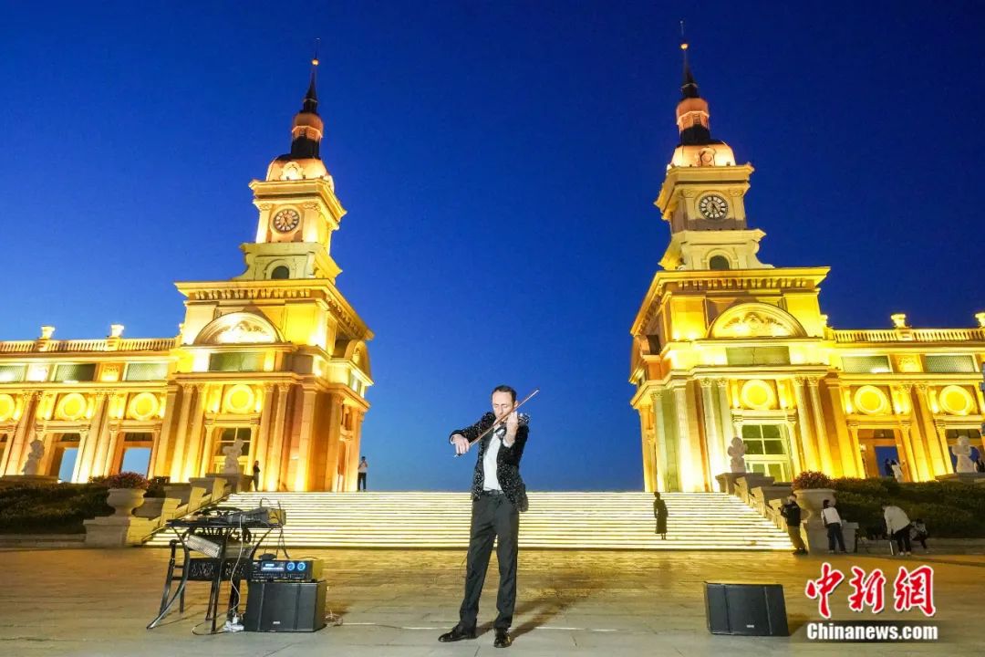 9月13日,黑龍江省首屆中俄地方文化藝術(shù)季街頭路演在音樂長廊舉行。演奏者用小提琴演奏《如愿》。中俄音樂文化交流廣泛而深入。趙宇航攝