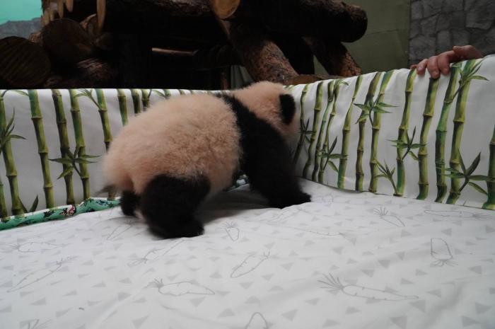 阿庫洛娃12月13日寫道,“小家伙已經學會四肢站立了。烏拉!”此外,她還呼吁大家參與征名活動,為大熊貓幼崽取名。