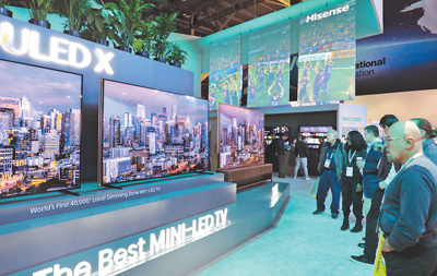 海信攜全球首款8K屏幕發(fā)聲激光電視、全球首款40000+分區(qū)Mini LED電視——110UX電視等全場(chǎng)景顯示技術(shù)解決方案亮相展會(huì)(見(jiàn)上圖,本報(bào)記者李志偉攝)。在110UX電視展品前,很多人駐足觀看,高清畫(huà)質(zhì)不時(shí)獲得稱贊。獲得“2024 CES創(chuàng)新獎(jiǎng)”的海信車用激光顯示技術(shù),展示了激光顯示在車載領(lǐng)域的潛力。海信國(guó)際營(yíng)銷公司副總裁戴維·戈?duì)柕聦?duì)記者表示,海信致力于將顯示技術(shù)融入生活,為消費(fèi)者提供超越屏幕的體驗(yàn),讓其成為生活的一部分。