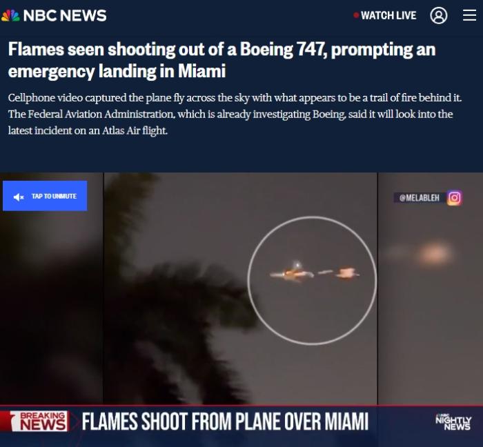 據(jù)報道,18日晚間,阿特拉斯航空公司的一架波音747型貨機從邁阿密國際機場起飛后不久便遭遇發(fā)動機故障,隨后在同一機場緊急迫降。