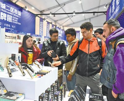 在義烏國(guó)際商貿(mào)城,外國(guó)客商正在選購(gòu)小商品。