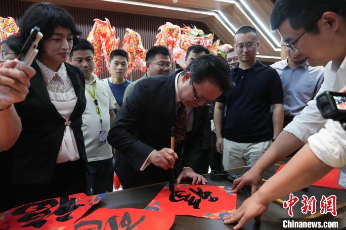 圖為中國(guó)駐菲律賓大使黃溪連在現(xiàn)場(chǎng)書寫福字。張興龍 攝