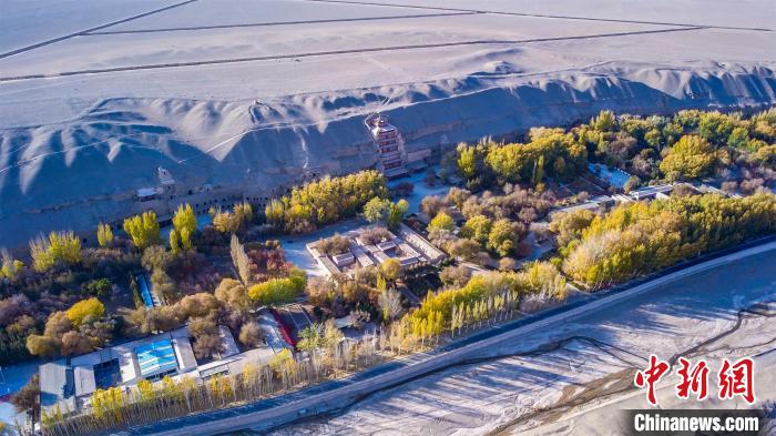 2022年11月,航拍深秋季節(jié)的莫高窟?! ⊥醣筱y 攝