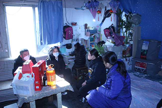 2022年1月24日,年關(guān)將至,氣溫驟降。濟(jì)南市中區(qū)人民法院少審?fù)サ姆ü賯冊诶罱ラL的帶領(lǐng)下,踩著厚厚的積雪,提著滿滿的春節(jié)年貨和生活、學(xué)習(xí)用品,來到轄區(qū)內(nèi)一間不足20平方米的簡易出租房內(nèi),看望了從大山深處來濟(jì)南生活的秦女士(化名)和她的三個(gè)女兒。 6年里的每個(gè)春節(jié)前夕,他們都會(huì)來看望這個(gè)因“案”結(jié)緣,心中時(shí)常牽掛的小姐妹家。