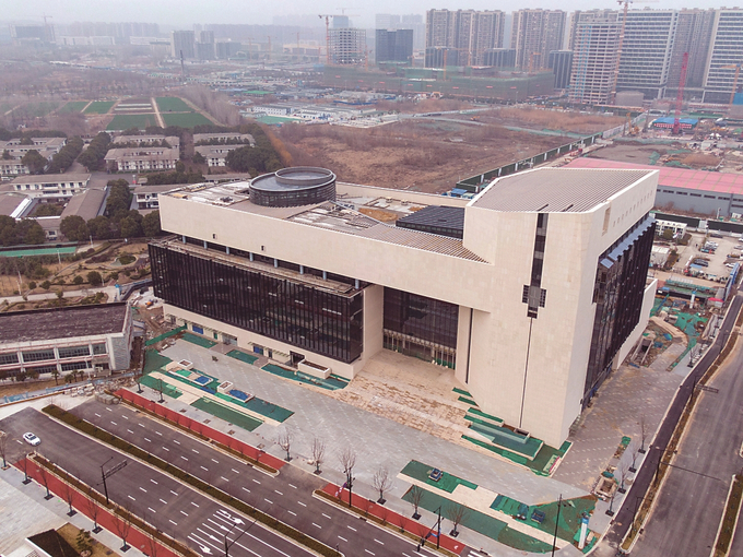 南京江北圖書館日前已基本完工。江北圖書館定位為國家一級圖書館,為公眾提供公益性終身學習、開放、自由、社交與休閑為一體的閱讀空間,突破單一的圖書館功能,使其成為國際化現(xiàn)代化的“城市文化客廳”和“市民書房”。圖為15日,空中俯瞰江北圖書館項目建設現(xiàn)場。 本報記者 陳儼 攝