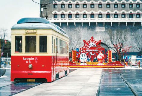 “春雪冬奧”讓前門街頭更添韻味。
