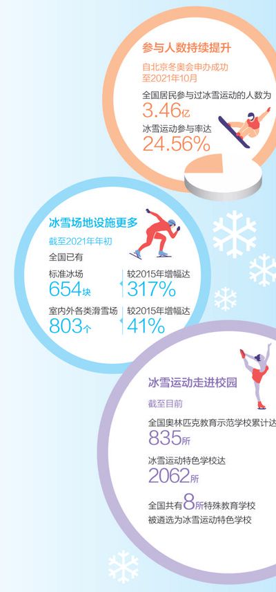 北京冬奧會(huì)和冬殘奧會(huì)的東風(fēng),播撒著冰雪運(yùn)動(dòng)的種子,在各地生根萌芽。自申冬奧成功至2021年10月,全國(guó)居民參與過(guò)冰雪運(yùn)動(dòng)的人數(shù)達(dá)到3.46億,冰雪運(yùn)動(dòng)參與率達(dá)24.56%,“帶動(dòng)3億人參與冰雪運(yùn)動(dòng)”愿景成為現(xiàn)實(shí)。國(guó)際奧委會(huì)主席巴赫表示,我們歡迎中國(guó)成為冰雪運(yùn)動(dòng)大國(guó)。