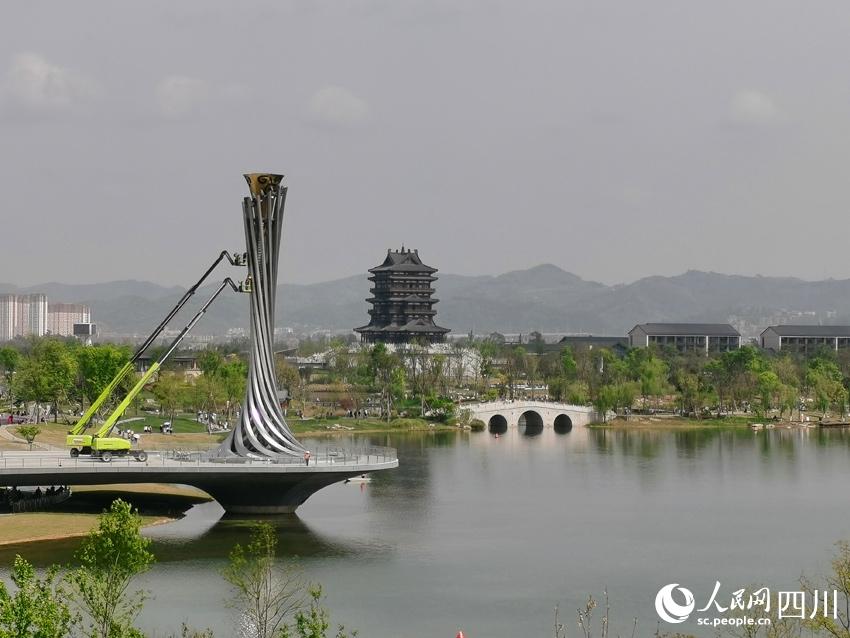 火炬塔和對面的體育館是一對互相聯系的建筑,不僅在設計風格上有聯系,在實際使用上更有聯系。袁精國介紹,火炬塔使用的是天然氣點火,比較綠色環(huán)保,符合成都公園城市的發(fā)展要求。在體育館和火炬塔之間,通過一套先進的控制傳輸系統(tǒng),在場館里就可以進行點燃及熄滅火炬的操作。在大運會舉辦期間,這個主火炬將配合園區(qū)的夜間燈光景觀系統(tǒng),構建出一個如夢似幻的錦城之夜。其中,有個名為“花好月圓”的景點,會在夜晚給人帶來非常浪漫的享受。一根銀白色的半圓形燈管,勾勒出半輪明月的風采,與周圍的燈光及水面配合,讓人如同置身于詩意世界,啟發(fā)人想起無數關于明月和鮮花的美好詩句來。