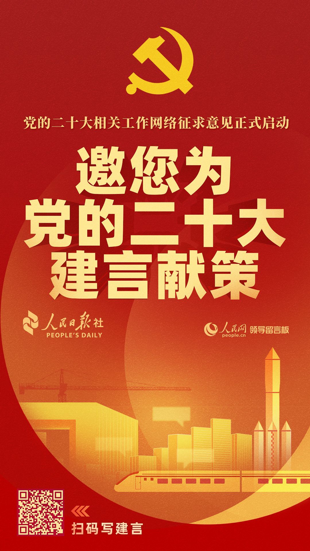 黨的十九屆六中全會決定,黨的二十大于2022年下半年在北京召開。開展黨的二十大相關工作網(wǎng)絡征求意見,充分彰顯了以習近平同志為核心的黨中央發(fā)揚民主、集思廣益的優(yōu)良作風,是我們黨堅持以人民為中心、尊重人民主體地位、走好群眾路線的重要體現(xiàn),是發(fā)揮中國特色社會主義制度優(yōu)勢、推進全過程人民民主的生動實踐,是適應互聯(lián)網(wǎng)時代新要求、推進國家治理體系和治理能力現(xiàn)代化的有益探索。