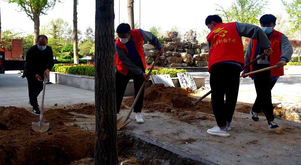 種樹就是種幸福,愛樹就是愛子孫。4月15日,市職教中心主教學樓前人頭攢動,學校黨總支書記么柱利、常務(wù)副校長劉紅芹與閆怡凡、陳柯安等10余名同學栽下一棵棵銀杏樹,共同收獲勞動的喜悅。