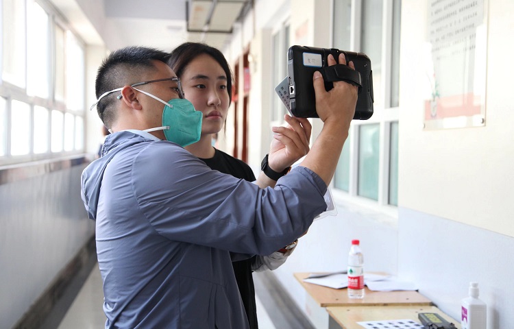 晉城市實(shí)驗(yàn)中學(xué),考場門口進(jìn)行身份證和人臉比對檢測。陳意茹攝