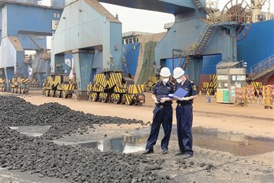 海關(guān)關(guān)員對焦炭進(jìn)行現(xiàn)場監(jiān)管。天津海關(guān)供圖