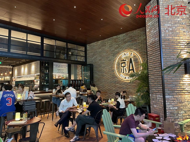 除了火鍋店,一家名為“京A Taproom”的美式精釀啤酒餐吧也熱鬧十足。美式工業(yè)風(fēng)的裝潢極具格調(diào),炸雞配啤酒的組合也頗有人氣?!斑@里的氛圍我很喜歡,小吃和啤酒也很對(duì)我的胃口,來(lái)這里能夠忘掉那些煩惱和壓力?!崩钆吭诠ぷ髁艘惶熘?,邀約了朋友一起來(lái)這家餐吧放松心情。