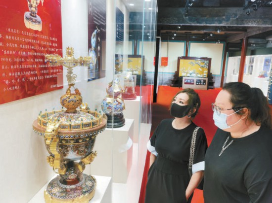 昨天,“匠心筑夢共創(chuàng)未來——燕京八絕非遺創(chuàng)新精品展暨中國工藝美術大師張同祿景泰藍傳承作品特展”在千年古剎承恩寺北京燕京八絕博物館開幕。觀眾品鑒了《座龍花薰》《富貴恒通》《花漫春和》《智趣》等二十余件題材豐富廣泛、釉質細膩華美、造型多姿多彩、立意莊重深遠的景泰藍工藝精品。 本報記者 吳鏑攝
