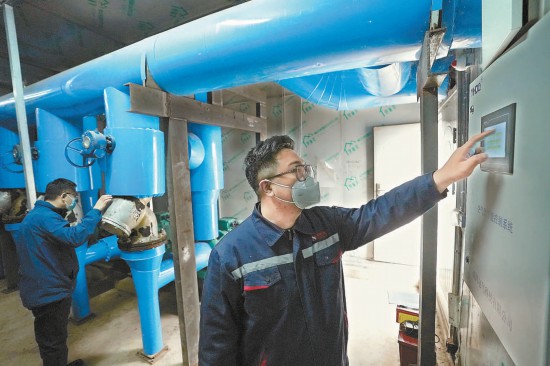 為應(yīng)對氣溫驟降,海淀區(qū)“無煤化”空氣能集中供暖騷子營站的工作人員值守在崗,及時對運行機組數(shù)量和水溫進(jìn)行調(diào)節(jié)。