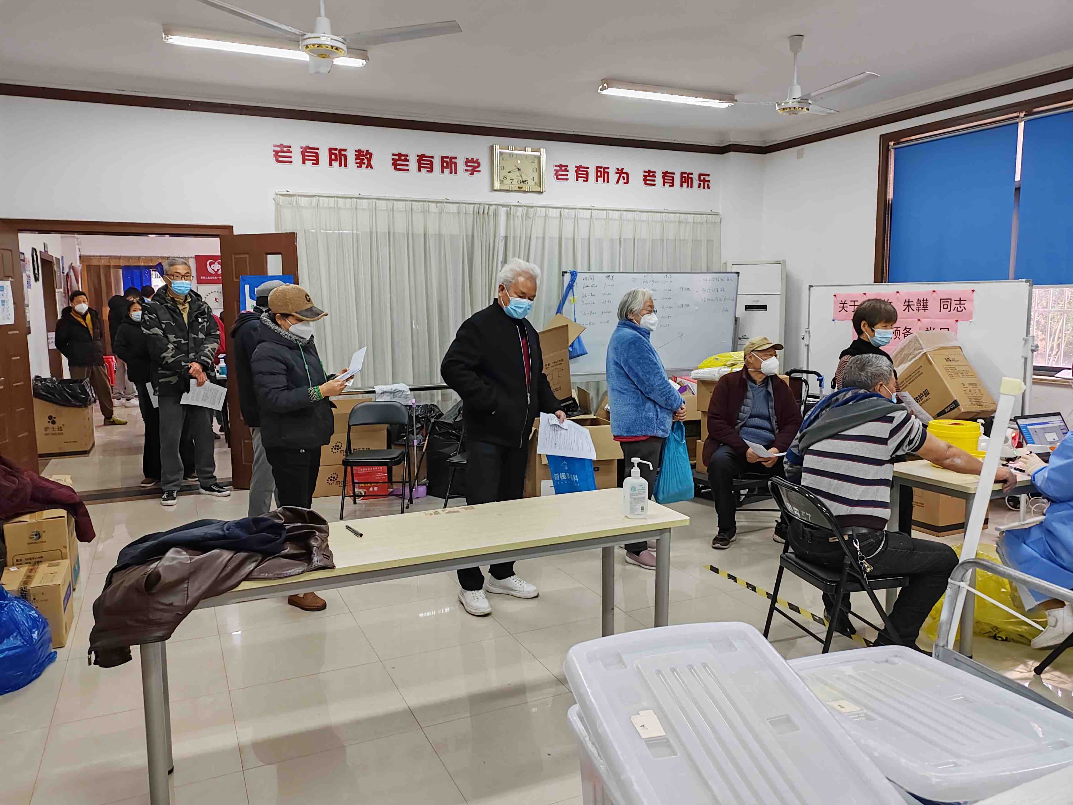 12月12日起,香溢居民區(qū)打疫苗老人的數(shù)量明顯上升,最多的一天接種了30多針,整個北蔡鎮(zhèn)每天能接種300余針疫苗,比6、7月份時翻了幾十倍?!?5歲的、100歲的都來了,很多老人獨居,我們就在家屬委托下,由居委會工作人員陪同接種,行動不便的,可到居委進行上門接種登記”,徐慶偉說。