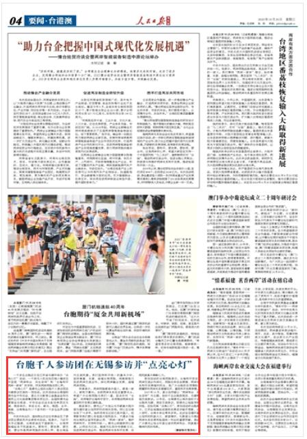 人民日報(bào)海外版|臺(tái)胞千人參訪團(tuán)在無錫參訪并“點(diǎn)亮心燈”