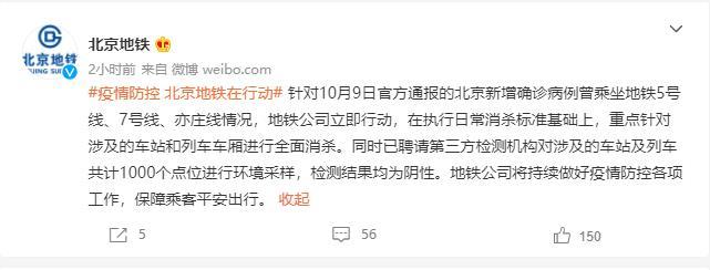 北京地鐵:確診病例軌跡所涉點(diǎn)位檢測(cè)結(jié)果均為陰性
