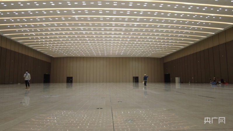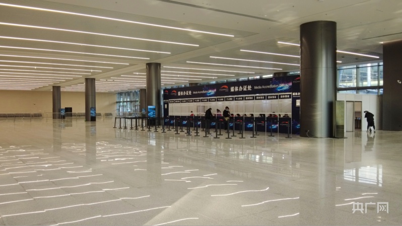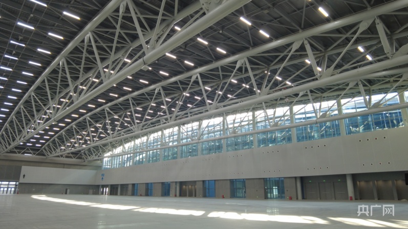 D區(qū)設(shè)有東西兩個(gè)登錄大廳,面積分別為9600、3000㎡,凈高約3.5米,圖為東登錄大廳(央廣網(wǎng)記者 夏燕 攝)