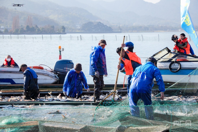 新春走基層|魚(yú)躍人歡 寧波東錢(qián)湖開(kāi)啟新年冬捕第一網(wǎng)