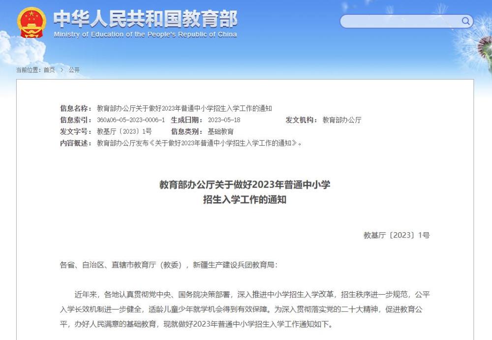 央視網(wǎng)消息:近日,教育部辦公廳發(fā)布《關于做好2023年普通中小學招生入學工作的通知》。主要內(nèi)容如下: